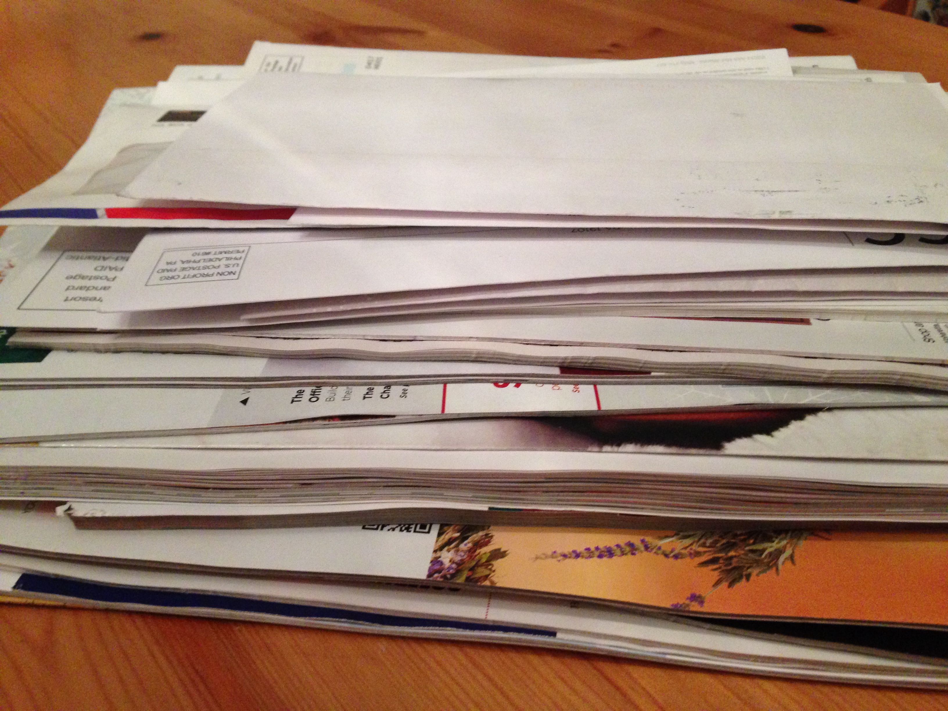 Here is what I kept: two catalogs I enjoy, and two bills to pay.