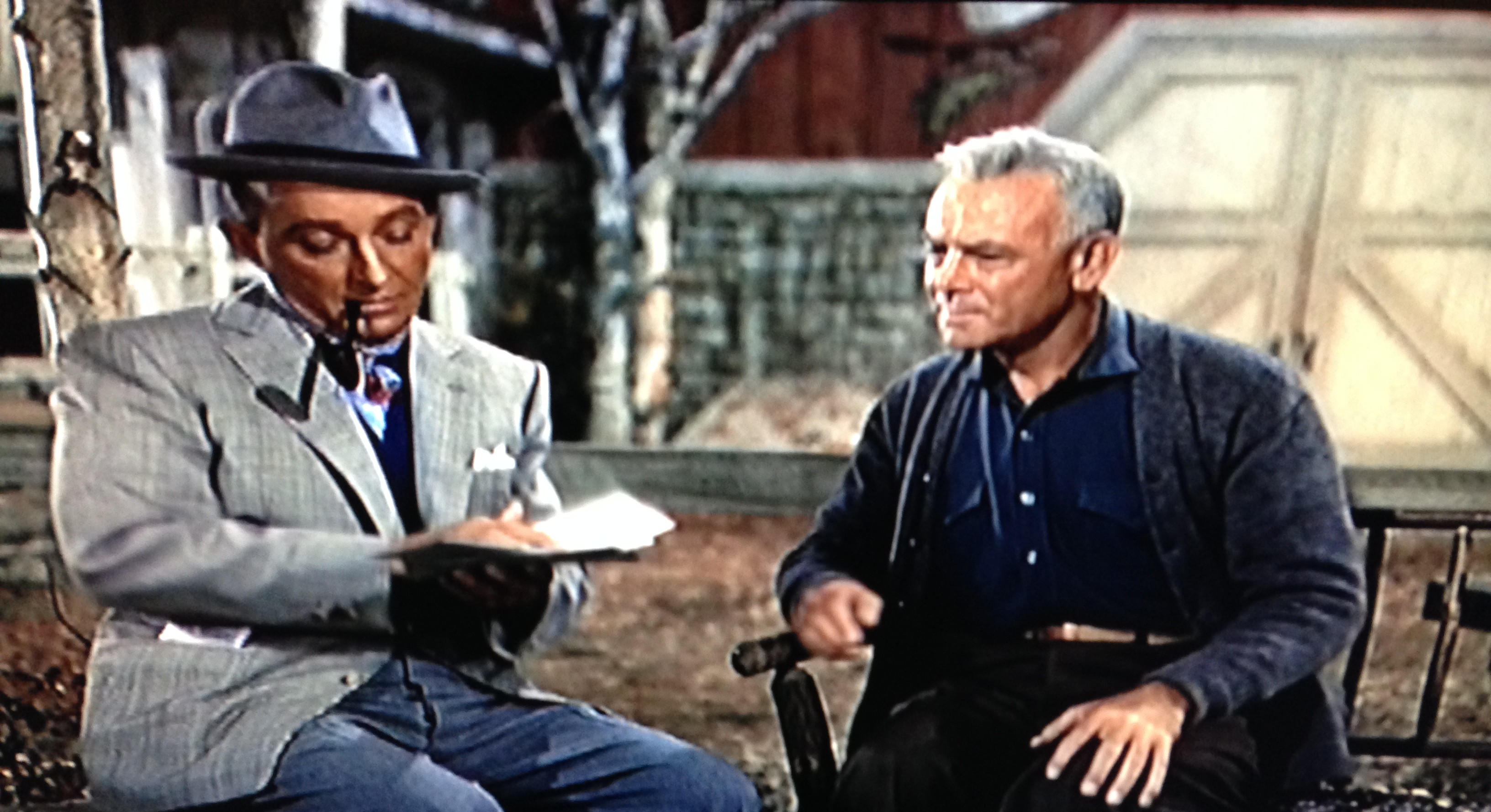 It’s only mid-November, so to get myself into the holly jolly spirit I turned to the reliable old chestnut, the movie White Christmas. It’s my “ironing movie” for present wrapping: lots of good songs, and visuals I’ve seen so many times I don’t need to keep my eyes on it. I started wondered how much of an age difference there was in real life between Bing Crosby and “The General,” Dean Jagger (just learned the actor’s name), who was such a source of pity because he was being put out to pasture. Turns out they were the same age … fifty-one! In the scene below, the General keeps calling “Bob” son. And Rosemary Clooney, Bing’s romantic interest in the story, was only twenty-six!