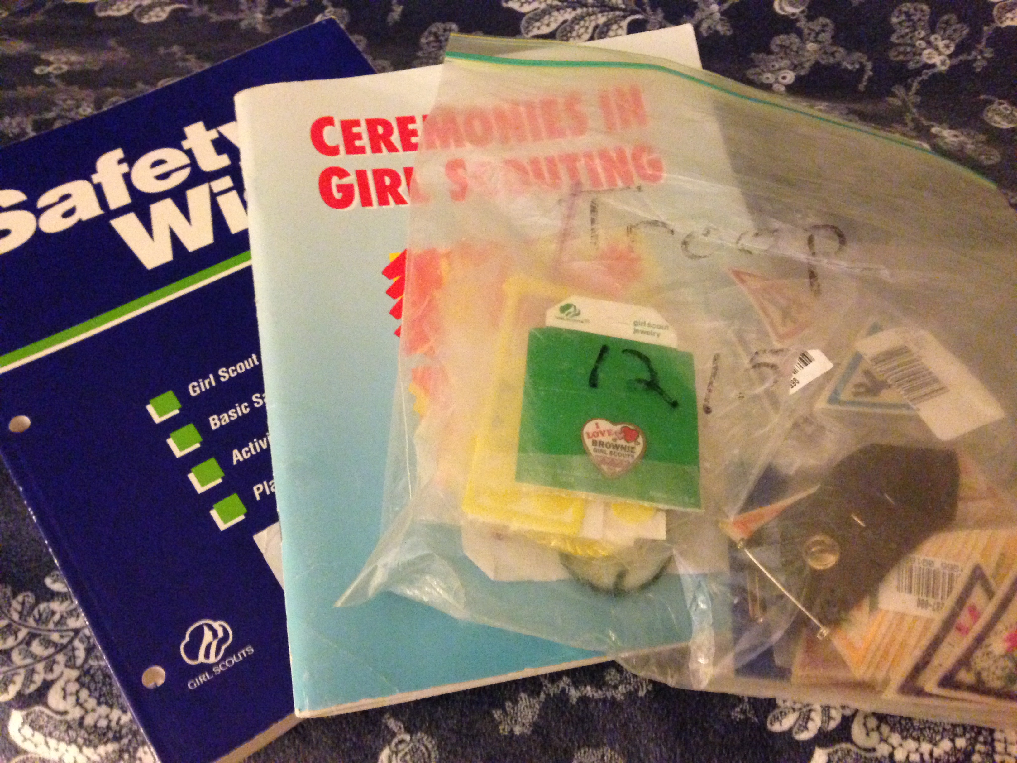 Most appallingly old?  Girl Scout paraphernalia from when I was scout leader for my older daughter’s troop.  I always imagined myself donating it all back to the place where I purchased it, but today I stuffed it in a Goodwill donation bag. Phew.  I hope some other mom or girl will appreciate it.