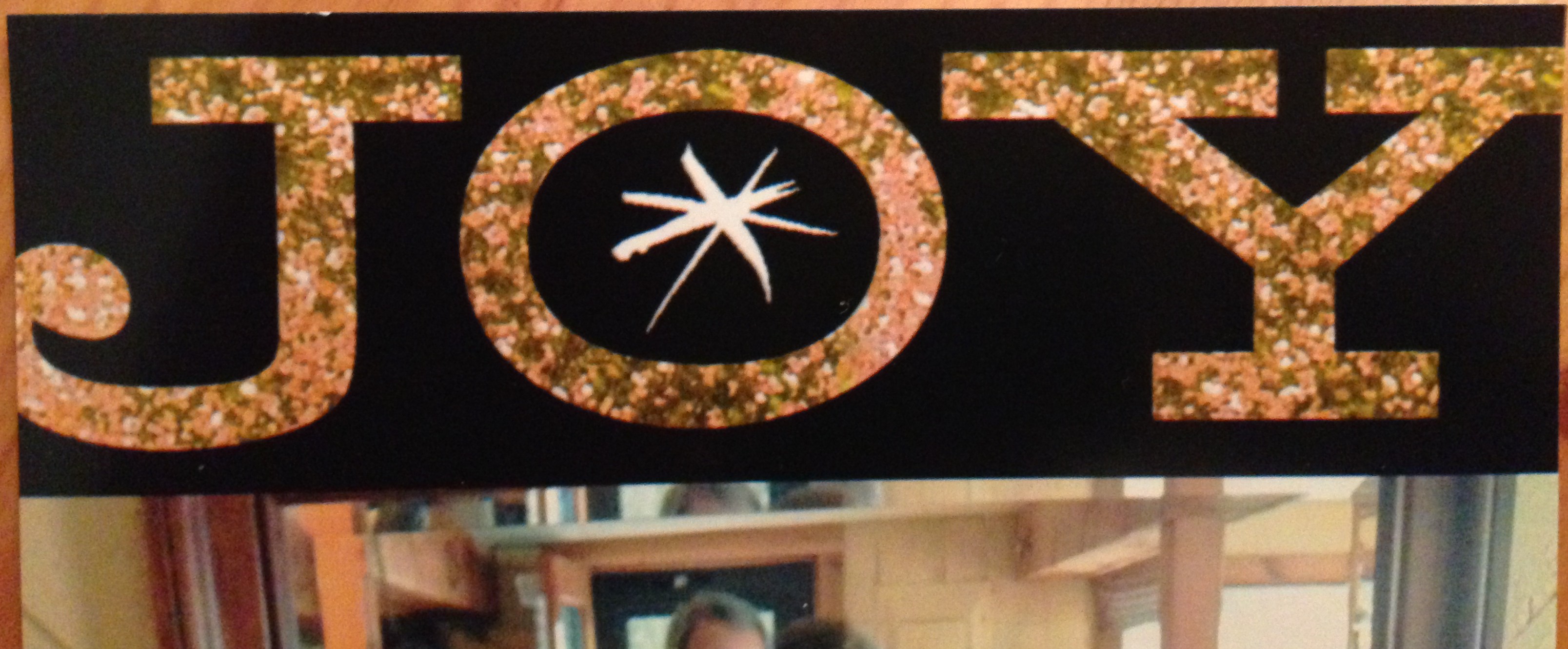 The saga of our 2014 Christmas card printing continued with another little glitch.  We left off when the machine at Target was out of order. When I returned, the word JOY on the top of the cards did not look the way it did in the computer mock-up.  My comment, silly as it sounds, was, “The Joy is cut off.”  The gentleman at the counter told me to put the flash drive back in the machine and start over again.  We both looked at the computer screen and the way the card was supposed to look, with a little bit of space around the word.  He started the order over again … and the cards came out, again, with “the Joy cut off.”