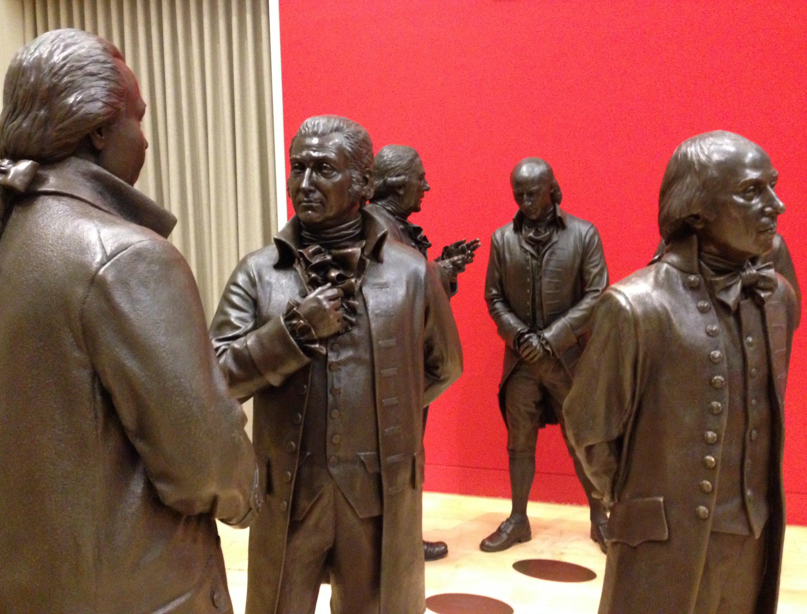 The gentlemen above are some of our 42 Founding Fathers, immortalized in life-size bronze statues at Signer’s Hall at the National Constitution Center in Philadelphia. I always get chills walking amongst them.
