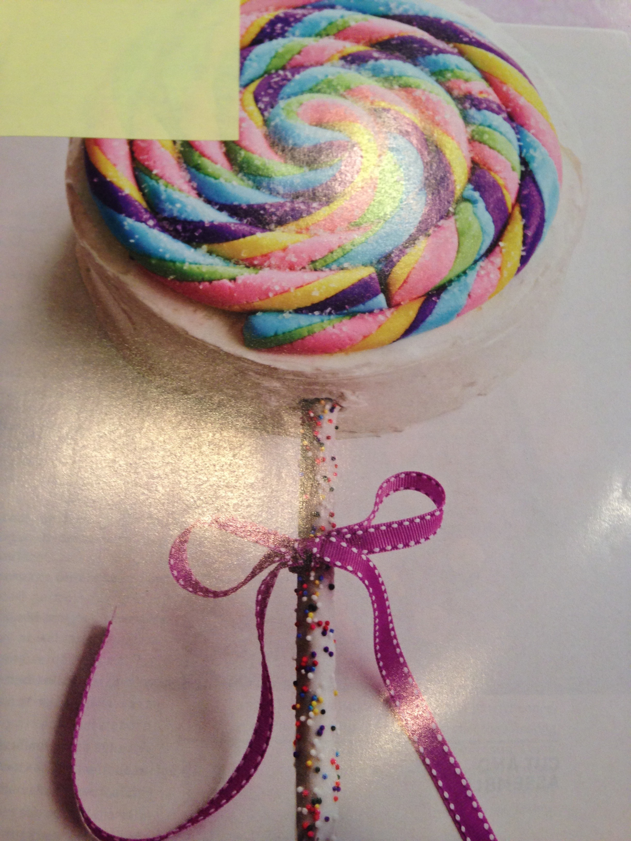 As they say, “Mistakes were made.” I thought the lollipop cake below would be a snazzy one, but didn’t realize I needed to wear gloves in order to knead the food color into the fondant.