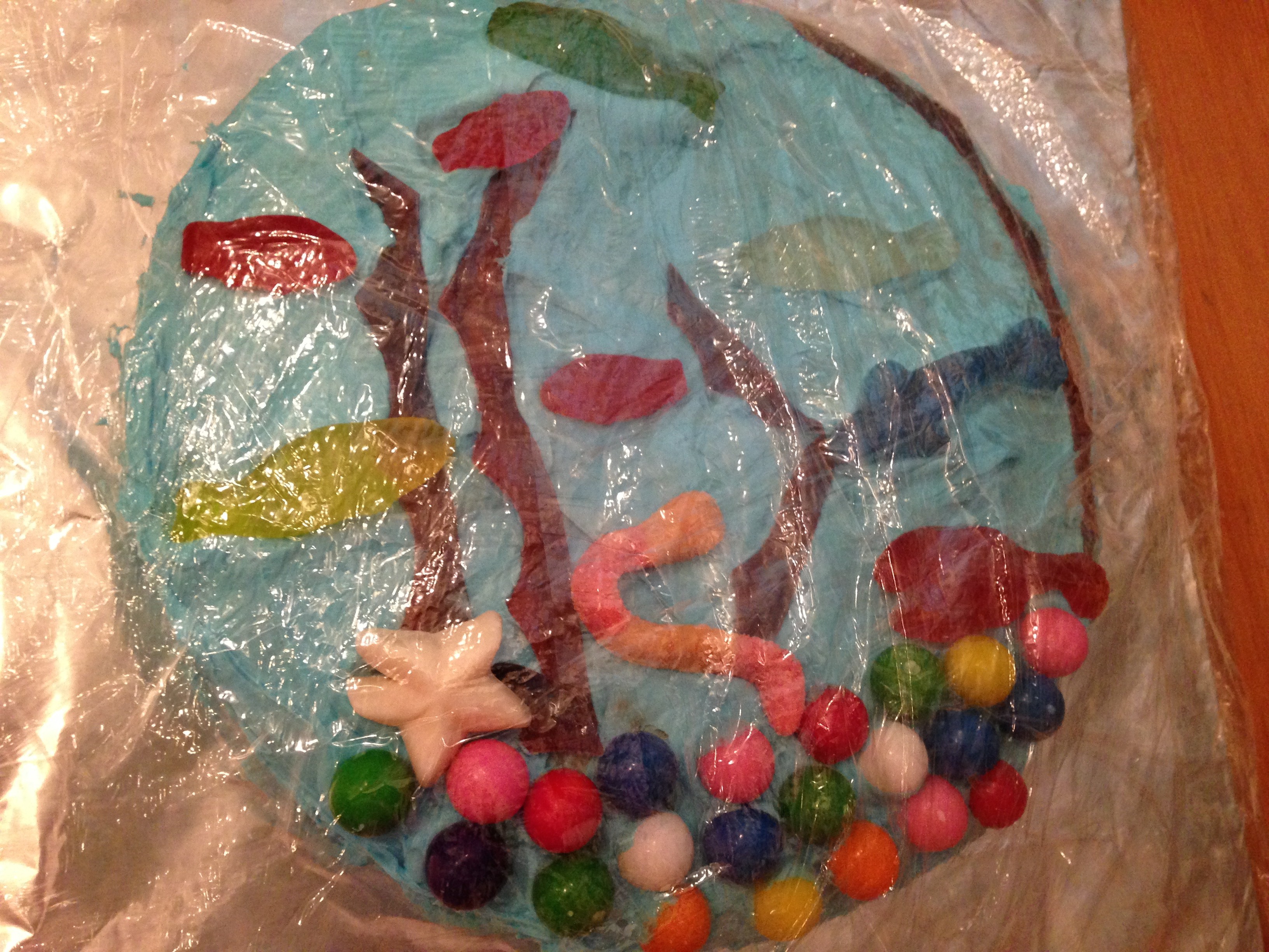 I went to Plan B, the Henry and Mudge cake from Cynthia Rylant’s book Henry And Mudge And The Best Day Of All, wherein Henry has a birthday cake made to look like his aquarium. A family favorite.