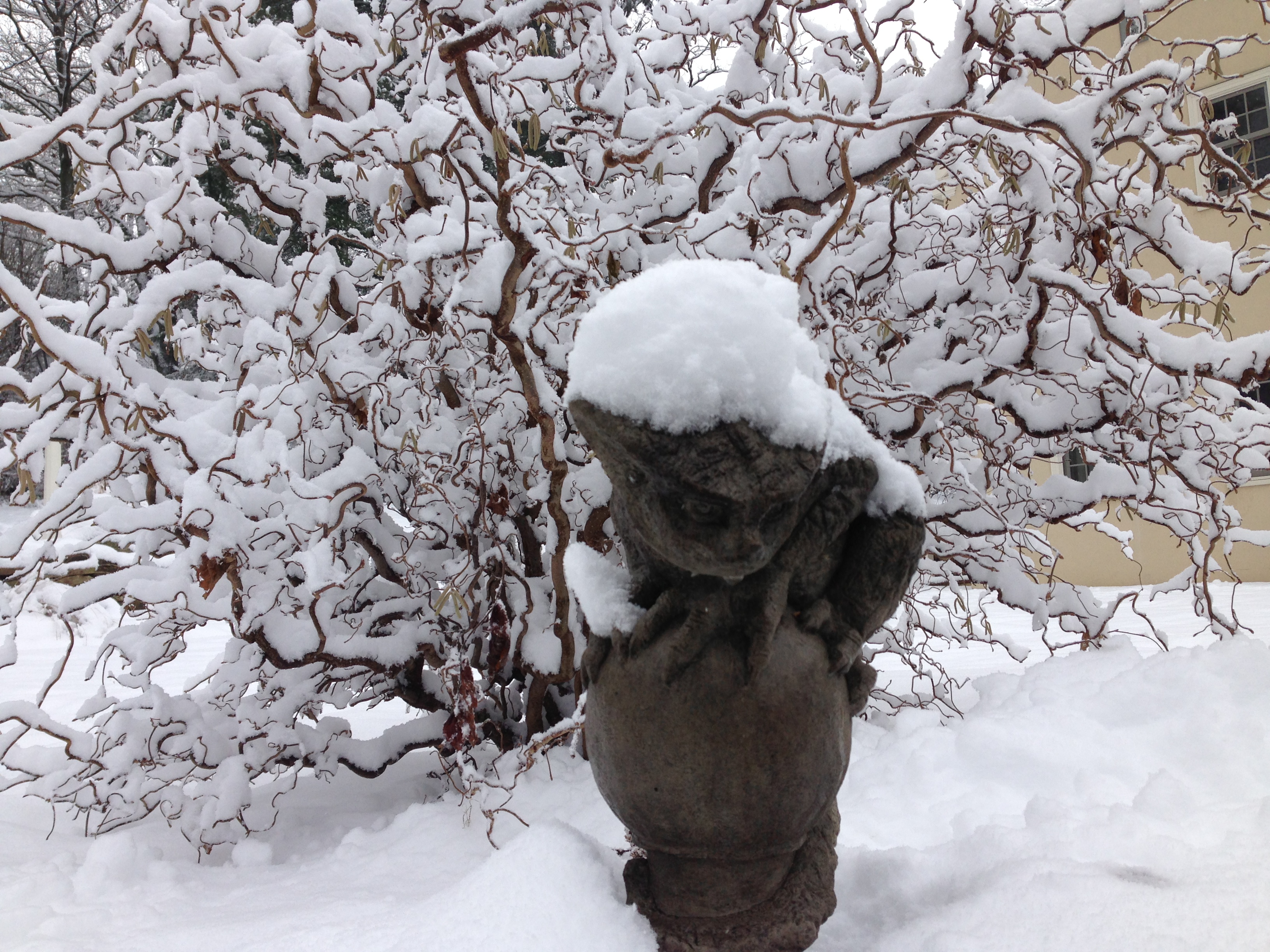 Here is a picture taken earlier this season, when the snow was fresh and fluffy.  I felt like the gremlin with way too much on my mind: