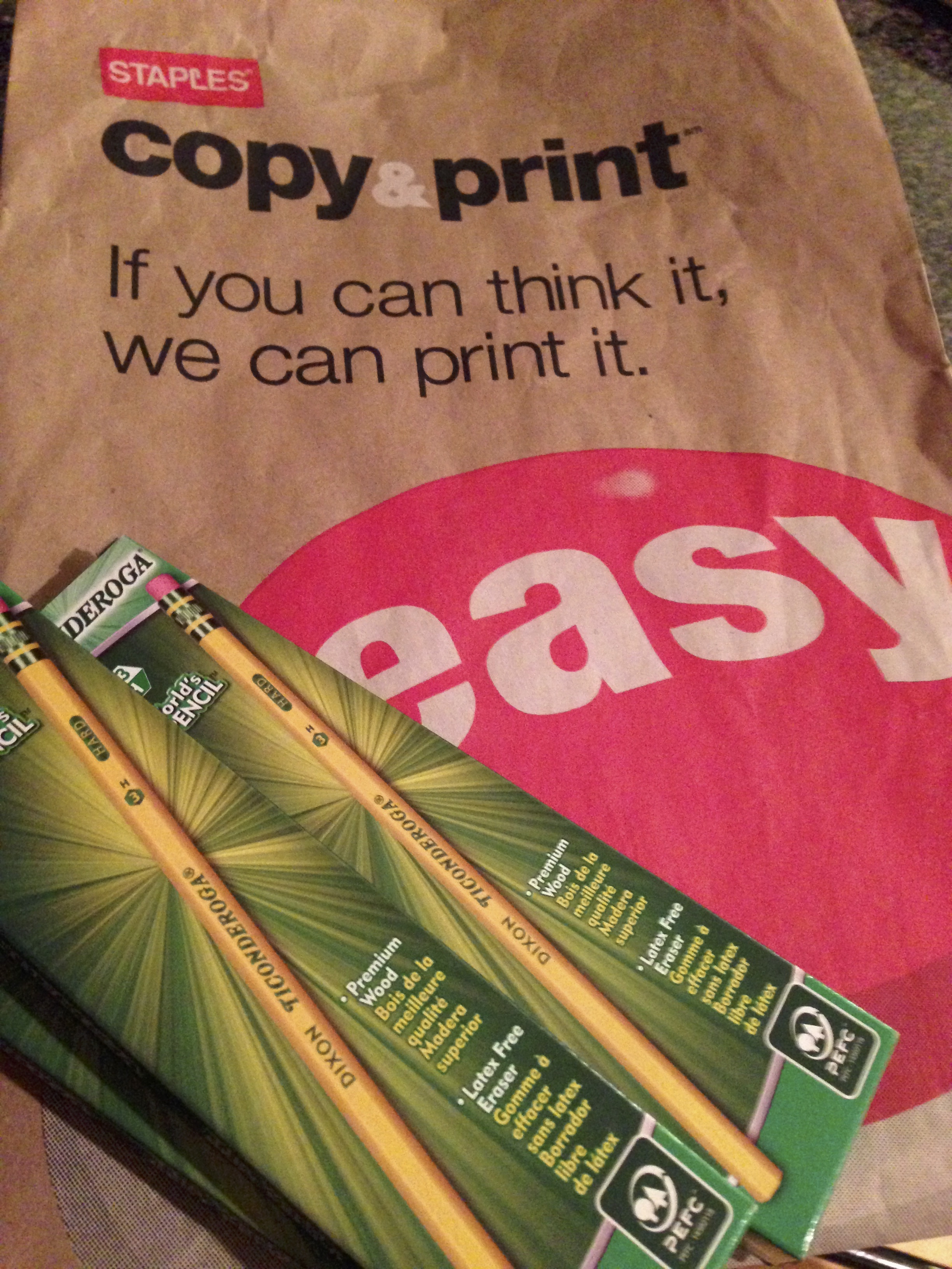 As mentioned earlier, one of the traditional stocking stuffers my kids can expect is a small box of Ticonderoga pencils.  Something about having plenty of pencils makes me, as a mother, happy and my kids, if not happy, then well-equipped.   There were only three boxes in the store when I was there to print the holiday newsletter — fine, because only three stockings would be hung by the fire with care this year (our two daughters and our youngest niece).   I was being very careful about not bulking up the bunch of presents to send overseas with my son’s friends, so I thought, “Okay, this year he won’t have the pencils.”  But I just couldn’t let it go.  “They’re not very large, or heavy,” I reasoned. “Does he even have a pencil sharpener there?”  “They’re only pencils, I’m sure they have them in Norway.”  “And the kids are probably humoring me by enjoying the gift.”  “But it’s our tradition, and he’s away from home for the first Christmas in his life.” “I’m such a basket case for obsessing about such a trivial thing!”  “Stop it!”  I finally made another trip to an office supply store to get the darn things, and a small, plastic sharpener, to boot.  (Not so “easy” after all.)
