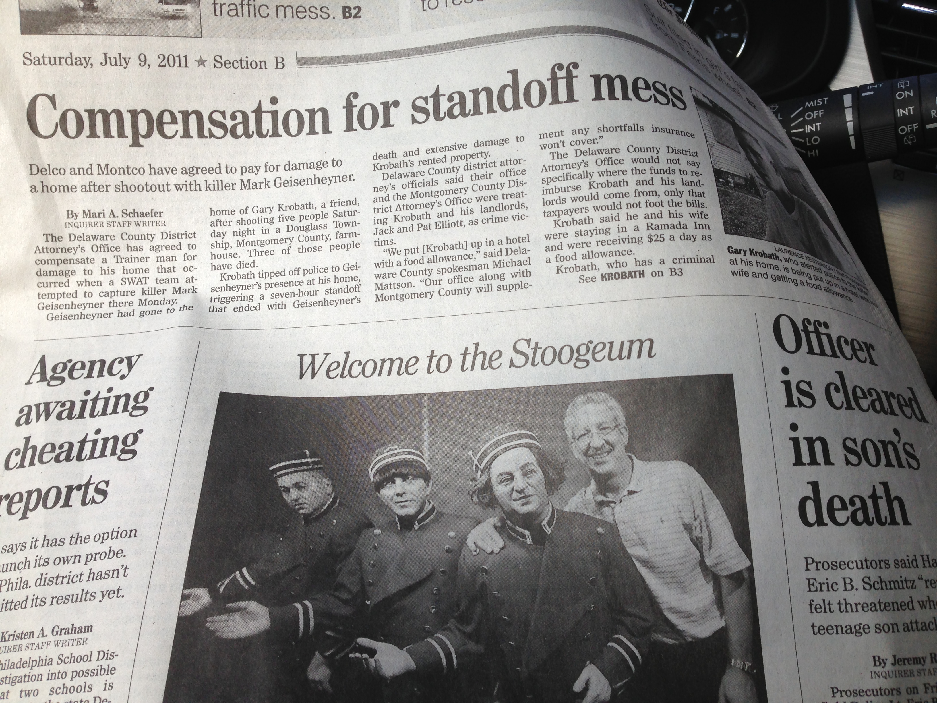 I sent my brother-in-law an article I had been saving since July 9, 2011! He is a Three Stooges fan, and I thought he’d enjoy reading about The Stoogeum, located in Philadelphia,”The world’s first and only museum dedicated entirely to the Three Stooges.” Occasionally treasure is mined from the depths of piles.