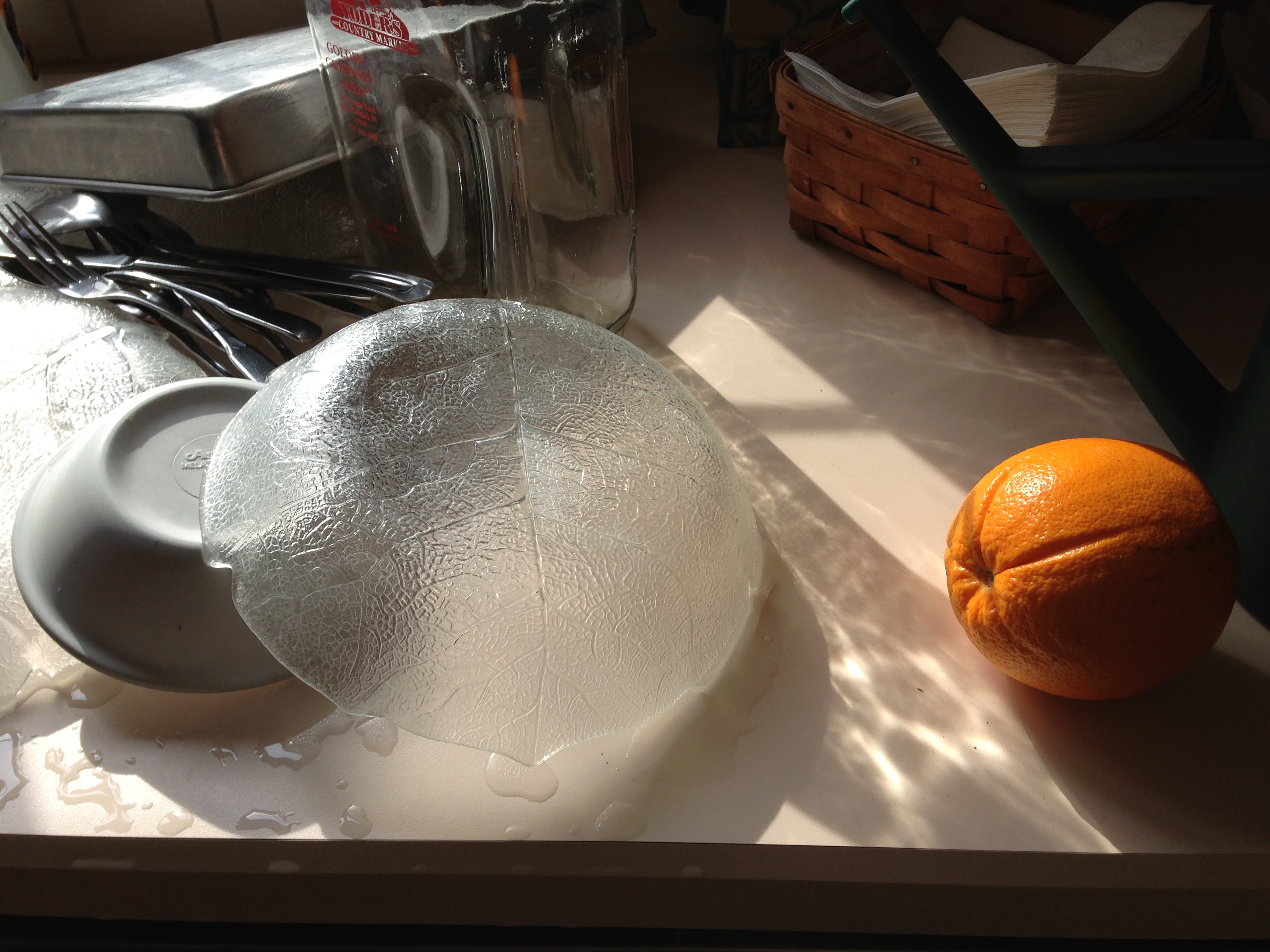 Our dishwasher is on the blink, so while waiting for the repair we are hand-washing our dishes. I guess the influence of the Thich Nhat Hanh calendar made me think of his profound advice against rushing through dish-washing to get to dessert. Mixed up in my mind, I thought it was rushing to eat an orange. (Another mindfulness exercise.)